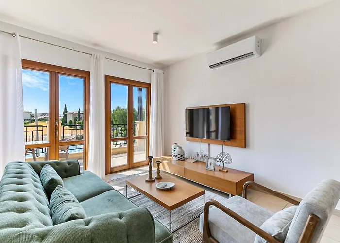 Nabízející venkovní plavecký bazén, apartmán Aphrodite Hills Pool View 2 Bed Flat Bf12 je umístěn 3 km od Afroditina svatyně. Letiště Mezinarodni letiste Paphos je vzdáleno asi 19 minut jízdy.